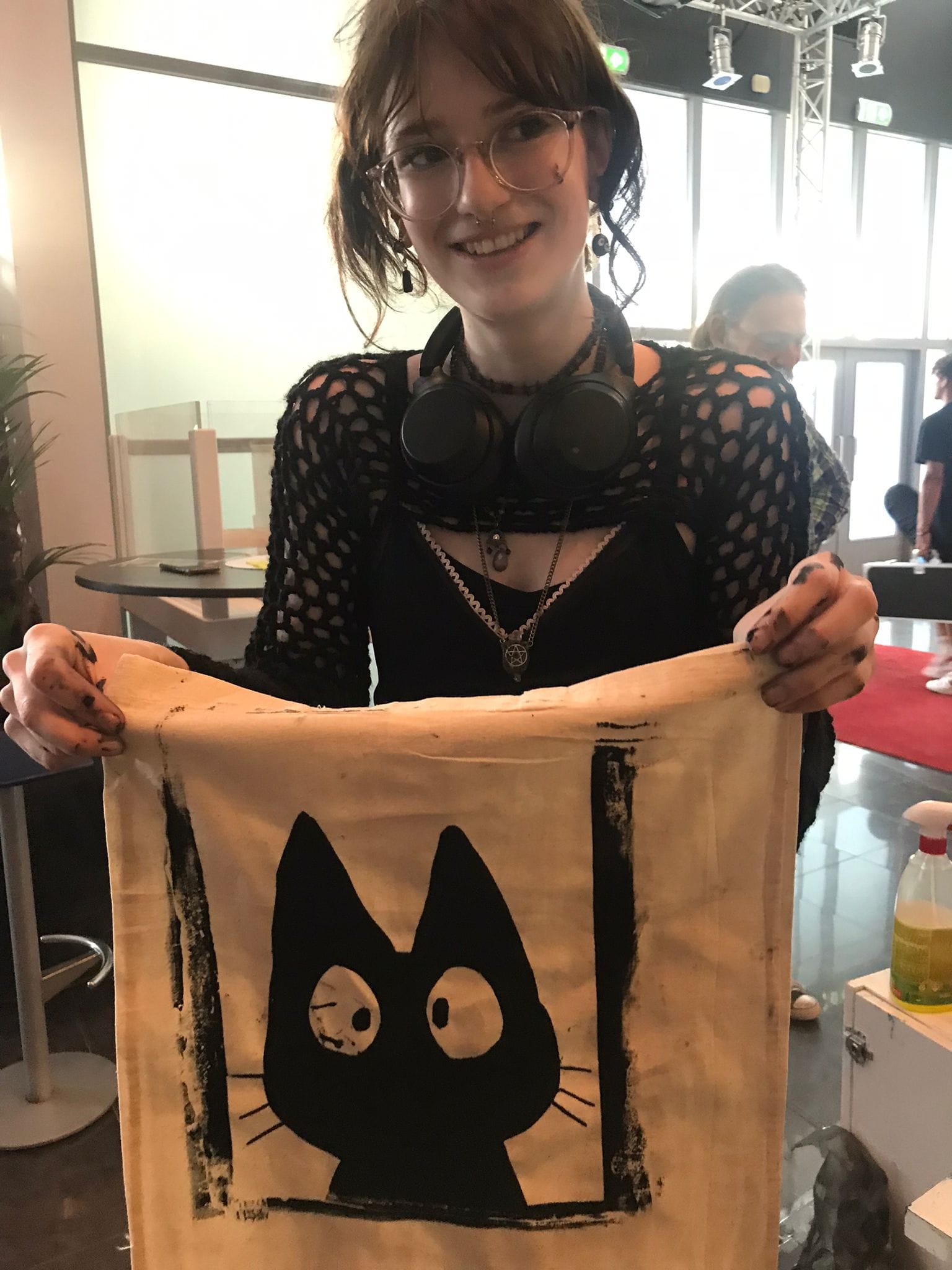 Zeefdrukken is een vluchtig medium en vrij toegankelijk binnen korte tijd kun je meerdere tasjes bedrukken. Die dag hebben we een kleine 400 man mogen ontvangen in het Scheldetheater voor de Kunstbende dus oranisatorisch vraagt dit uiteraard de nodige inspanningen van de organisatie vd Kunstbende maar ook van ons. Zo was ik erg blij met de extra hulp die ik er die middag bij had van een geweldige assistente die de hele middag mijn zeefdrukramen heeft lopen schoonmaken en uitspoelen. Kortom een zeer geslaagde middag en zie hieronder de resultaten om jou als lezer ook even in de sfeer te brengen. Ik heb er in ieder geval onwijs van genoten om deze workshop te mogen verzorgen. En met zoveel creatief talent om je heen dan kan je toch niet anders dan met een fijn gevoel naar huis rijden
